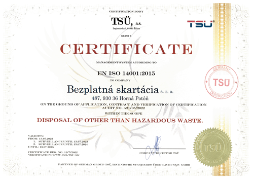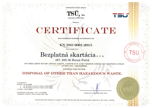 Naša spoločnosť sa riadi platnou legislatívou, dodržiava všeobecne platné legislatívne zákony dané štátom a disponuje platnými povoleniami potrebnými na poskytované skartačné služby.